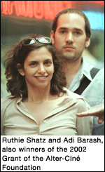 RUTHIE SHATZ and ADI BARASH, young fimmakers from Israel, are the co-winners of the 2002 Grant for their project “Garden”. The jury underlined the importance of revealing a reality denied by Israeli society, the respect and humanity demonstrated in the treatment, the relationship of confidence which the filmmakers have built with the characters and the subtlety of the cinematographic approach.